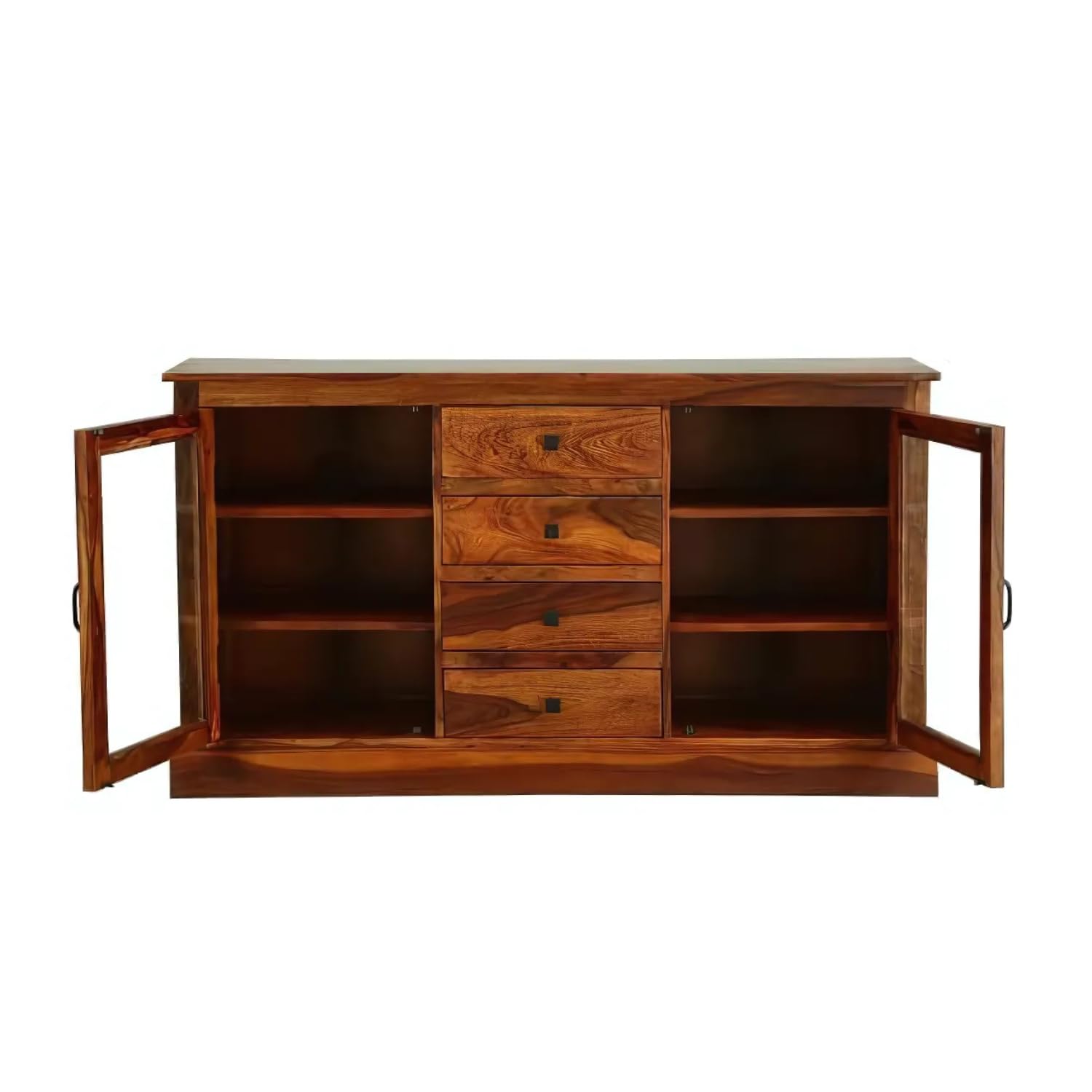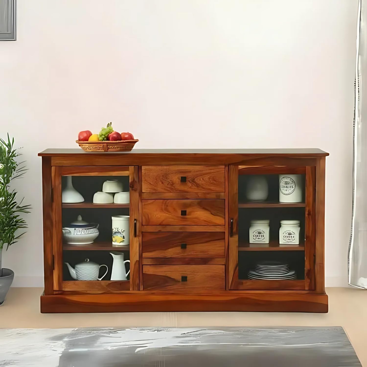 Solid Sheesham Wood Sideboard Tv Cabinet for Living Room | Free Standing Movable Tv Unit Side Board Table with 4 Drawers & 2 Cabinet Storage Furniture for Home | Honey Finish